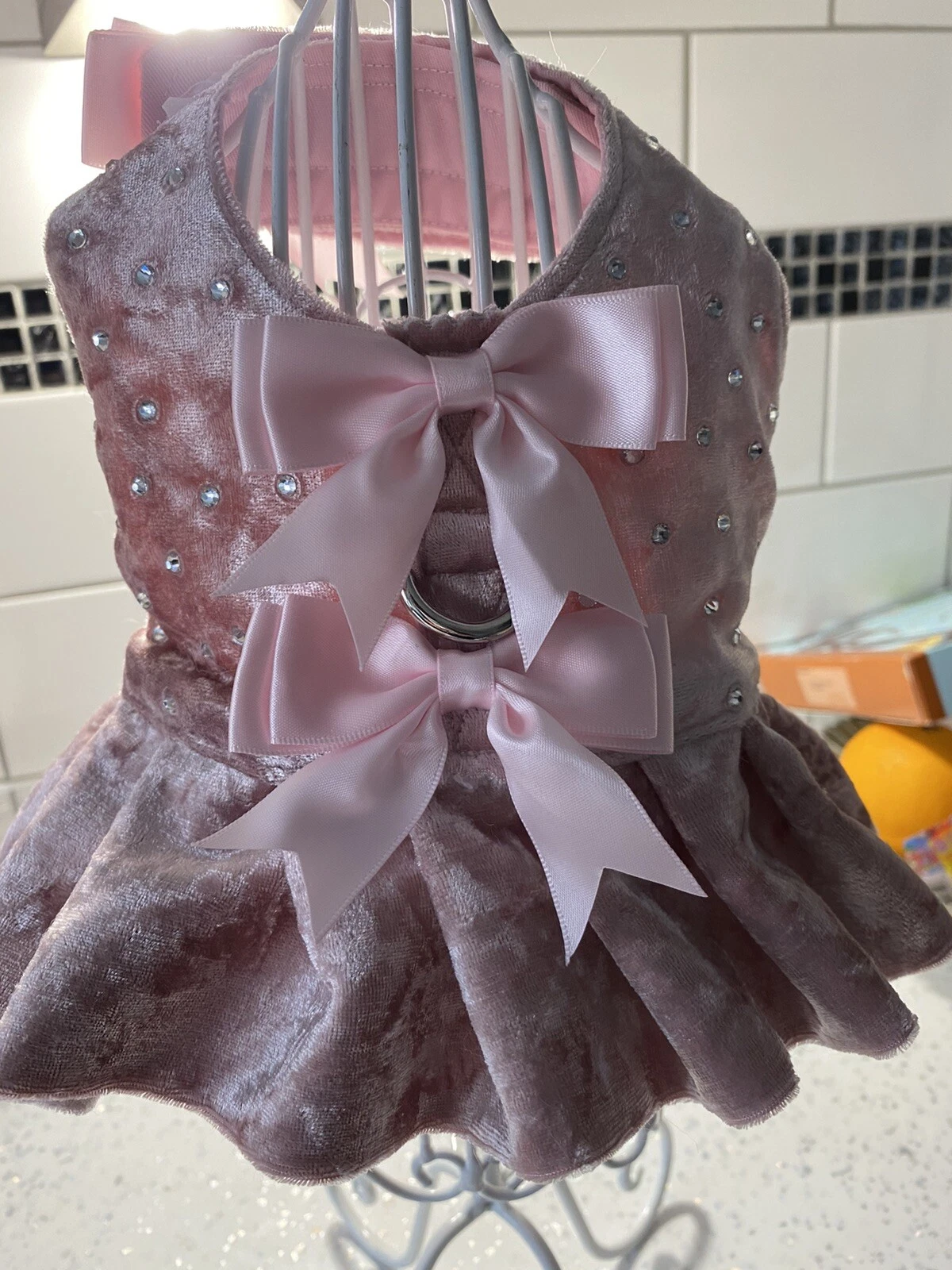 Decorated with satin bows and Swarovski element rhinestones.